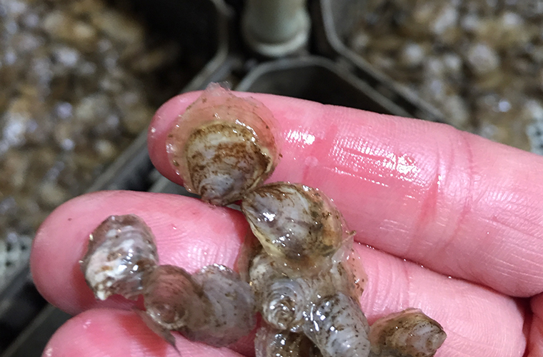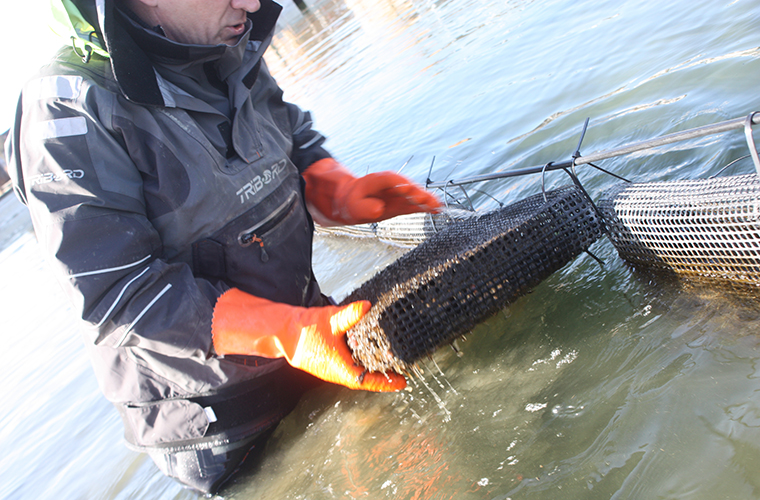 Tijdens het groeiproces is het sorteren van de oesters een belangrijk werk. Sorteren naar grootte maar ook triage van dode/slechte schelpen en levende.